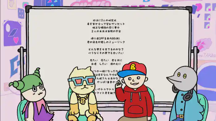 招き猫風ラッパー“マメ蔵”、かわいいけど天然なボーカル“もんちゃん”、そして謎のDJ兼コーラス“エノモトさん”で構成された音楽ユニット“オニギリズ”に、ゲストのBoseから歌詞作りにアドバイスが!