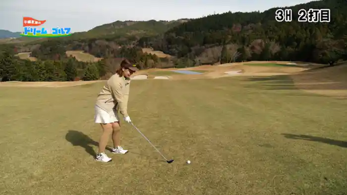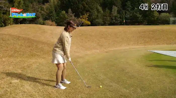 第5ホール。難易度高めのコースに悪戦苦闘の夏海ちゃん。またしても助っ人・尾崎プロのスーパーショットが!