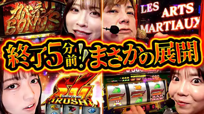 「パチスロ かぐや様は告らせたい」各予選ブロックを制して決勝戦に進出したのは七瀬静香、梅屋シン、政重ゆうき、ヨシノブ。ガチ系2名を交えて大混戦模様となる。開幕早々、とんでもない引きを見せる者が現れ...。