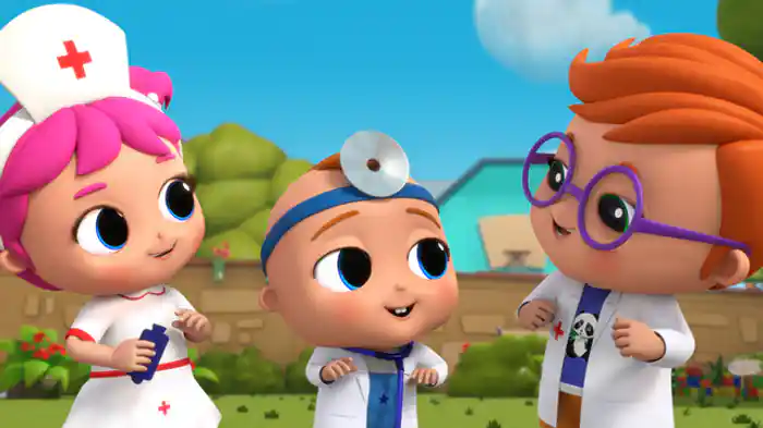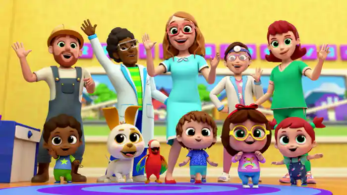 ベイビー・ジョンとお友達は、歌を歌いながら体の各部位について学ぶ。