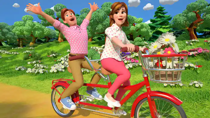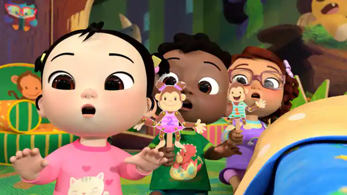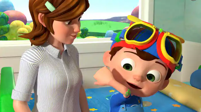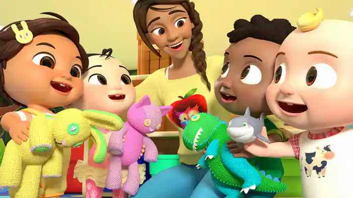 チャーミングなJJときょうだいたちの毎日はわくわくがいっぱい!「あたま かた ひざ つまさき」で体の名前を覚えたり、「ゆびファミリー」では家族みんなで歌ったり、「おかたづけのうた」でおもちゃを片付けたり、さまざまなことを学んでいく。