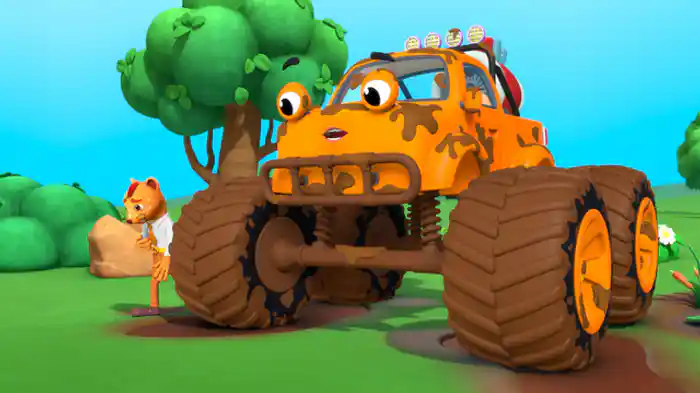 ゲッコーがトンネルに閉じ込められてしまった。マミートラックは、大きな岩を洞窟から押し出し、ゲッコーを助けることができるかな?