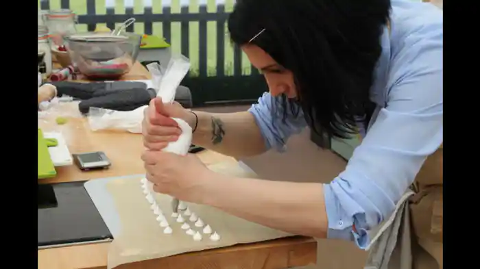 今回のテーマは“デザート”。オリジナルのお題はメレンゲケーキ。壊れやすいメレンゲを層状に重ねていく。テクニカルのお題はヴェリーヌ。正確な計量が鍵となり、ベイカーたちの明暗が分かれてしまう。
