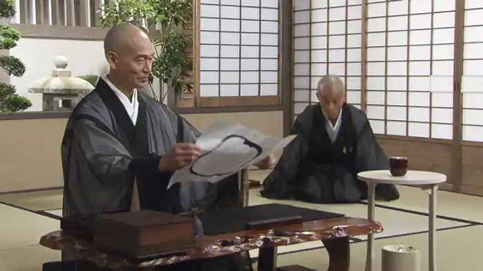木里子は偶然、龍雲寺に墓参りをしてきた忍に出会い、寺を訪れることに。宗達にお茶を振る舞われていると、陽春が帰ってくる。