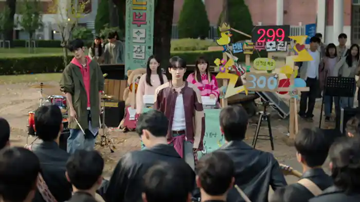 注目のバンド・AxMxPのハ・ユジュンと映画『はちどり』のパク・ジフ、N.Flyingのイ・スンヒョプら、人気スターが共演し、恋のバトルとみずみずしい青春を紡ぎ出す。